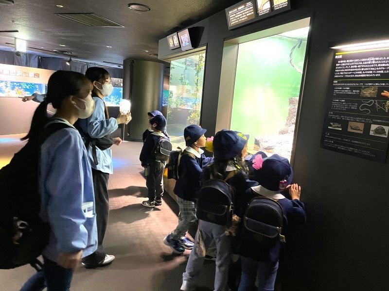 去る11/7(金)、年長組の子ども達が卒園遠足ということでサンシャインシティを訪れ、水族館やナンジャタウンなどを見学してきました。まだ卒園には少し早いのですが、年長組だけの特別な思い出作りの機会として実施いたしました。水族館では、海や湖にいる生き物たちを中心に、水辺に生息している様々な生き物を見学することができます。図鑑や絵本でしか見たことの無い生き物たちの大きさや動いている姿を実際に見ることができ、子ども達も興味を持って観察する様子が見られました。今年度も昼食は、展望レストラン「クルーズクルーズ」さんにお世話になりました。当日は天候に恵まれたこともあり、店内の窓からは遠くまでよく見える景色を楽しむことができました。そして、友だちや先生と会話を楽しみながら、楽しい食事の時間となりました。ナンジャタウンでは、何とも不思議な空間となっており、子ども達は所々にある仕掛けに驚いたり、面白がったりしながら、それぞれに楽しむ様子が見られました。年長学年も後期に入り、子ども達にはたくさんの成長が見られています。これから少しずつ卒園の時期が近づいて参りますが、引き続き子ども達には幼稚園での遊びや生活、行事等を通じて、友だちや先生と関わり合いながら、のびのびと成長していってほしいと思います。卒園遠足に際しまして、ご協力いただきました地域や保護者の皆様、関係者の皆様に心より感謝申し上げます。