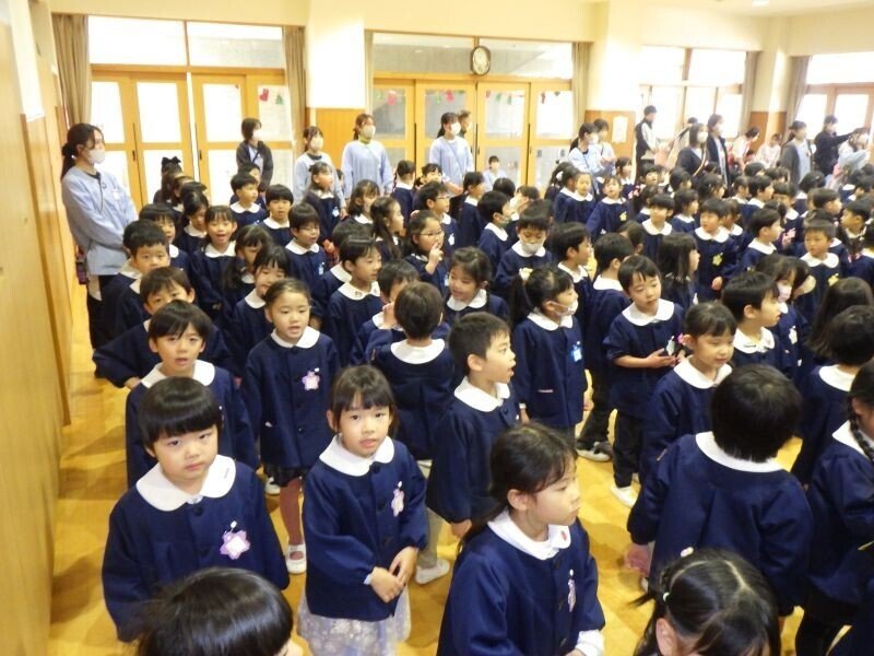 今日は2学期の終業式を行いました。みんなでホールに集まり、園歌を元気に歌いました。園長先生からは2学期の頑張りをたくさん褒めてもらいました。また、冬休みには年末年始の様子に目を向けると共に、「早寝早起き朝ごはん・あいさつをすること・事故やケガ、病気に気を付ける」といった約束の話がありました。そして、2学期末で産休に入る先生方から、子ども達へ挨拶がありました。母子ともに健康で、元気な赤ちゃんを出産できますことを願っています。