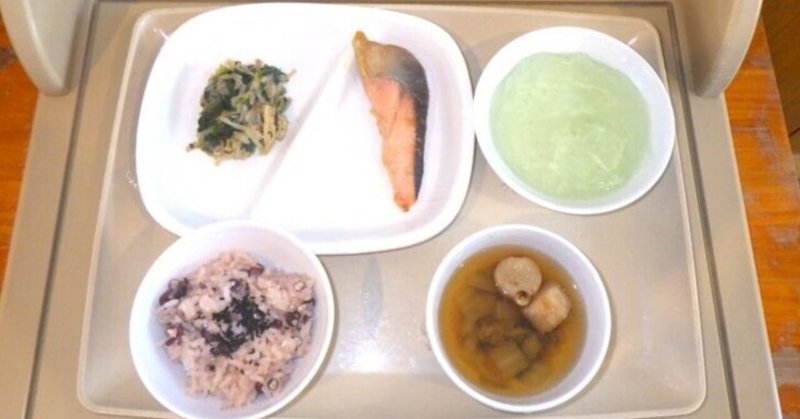 11/14の給食は「赤飯・お吸い物・鮭のみそ焼き・ほうれん草と油揚げの和え物・ゼリー(青りんご味)」でした。七五三にちなんで主食は赤飯でした。こうした日本の習慣も、食育を通して子ども達へ伝えていきたいと思っています。