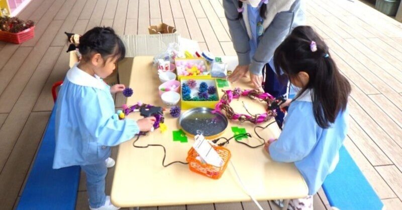 子ども達が楽しみにしているクリスマスまで1か月ほどになりました。幼稚園内にもクリスマスツリーが登場し、子ども達の話題になっています。そして、今日から園庭にはクリスマスリース等を飾り付け出来るコーナーを設置し、さっそく何人かの子ども達が遊びに来ていました。先日自分たちで作ったサツマイモのツルを巻いて乾燥させたリースの土台に、マツボックリなど様々な素材を使って自由に飾り付けしていきます。接着剤はグルーガンや工作用ボンドを使用していますが、グルーガンは熱い部分もあるため、先生が安全な使い方を教えてから行っています。危ないからと一律に禁止にするのではなく、「やってみたい!」という子ども達には、先生が見守りながら挑戦できるような関わりを大切にしています。今日もやり方を聞いて、慎重に使っている姿が見られました。但し「グルーガンはちょっと怖いかな…」という子ども達もいるので、その際はボンドを使いながら楽しむこともできます。これからもクリスマスへの期待を膨らませつつ、嬉しい気持ちを友達や先生と共有しながら楽しんでほしいと思っています。
