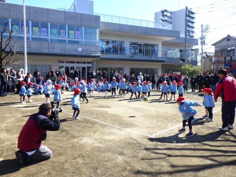 今日は年中組のミニ運動会を行いました。よい天気に恵まれましたが、吹く風は冷たく寒い1日となりました。そうした中でも子ども達は、クラスのみんと力を合わせて3種目を頑張りました。秋の運動会は表現がメインの運動会ですが、冬のミニ運動会はクラス対抗で行う競技中心の運動会です。大きなスタッキングを使った「つんでくずして」、ボールを投げてよける「中当て」、大きなバトンを2人で運ぶ「力を合わせて」の3種目で対戦しました。当園では、子ども達の協同性や競争心の育ちの観点から、年中組と年長組でクラス対抗のミニ運動会を行っています。順位はつきましたが、今日も子ども達それぞれに一生懸命に挑戦する姿が見られました。ご家庭では、子ども達のそうした姿をたくさん認めて、褒めていただきたいと思います。そして、3学期も残り少なくなりましたが、これからも友達や先生と一緒にたくさん運動をして大きくなっていってほしいと思います。ミニ運動会に際しまして、保護者の皆様のご協力に心より感謝申し上げます。