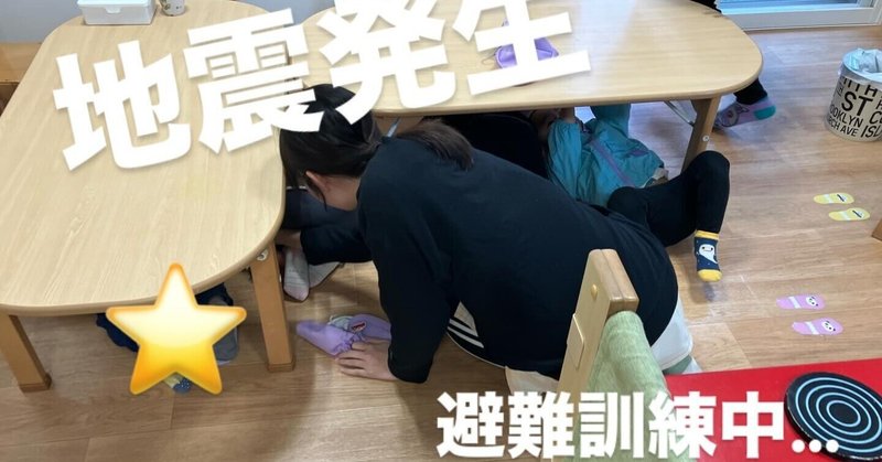 地震の時は、机の下に避難したり、ダンゴムシポーズになってみたりと身の守り方を学んでいる子どもたちです。